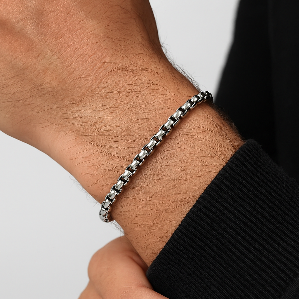 Minimal και διαχρονικό, αυτό το βραχιόλι είναι η ιδανική επιλογή για κάθε άντρα που θέλει να ολοκληρώσει το στυλ του με διακριτική κομψότητα. Κατασκευασμένο από υψηλής ποιότητας ανοξείδωτο ατσάλι, συνδυάζει ανθεκτικότητα και στυλ, ενώ μπορεί να φορεθεί καθημερινά χωρίς να χάνει τη λάμψη του.