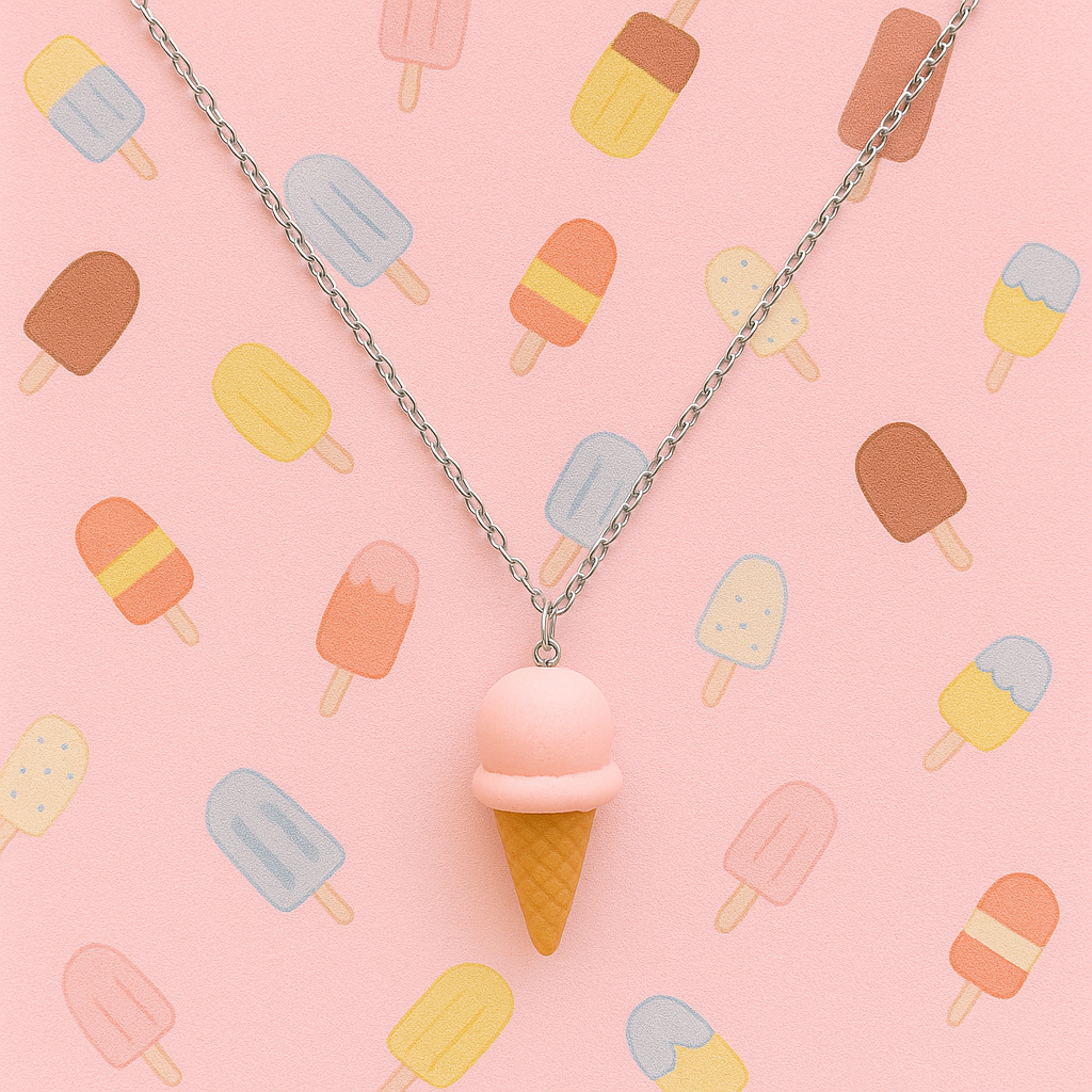Παιδικό Κολιέ Παγωτό - Ροζ - Ανοξείδωτο Ατσάλι