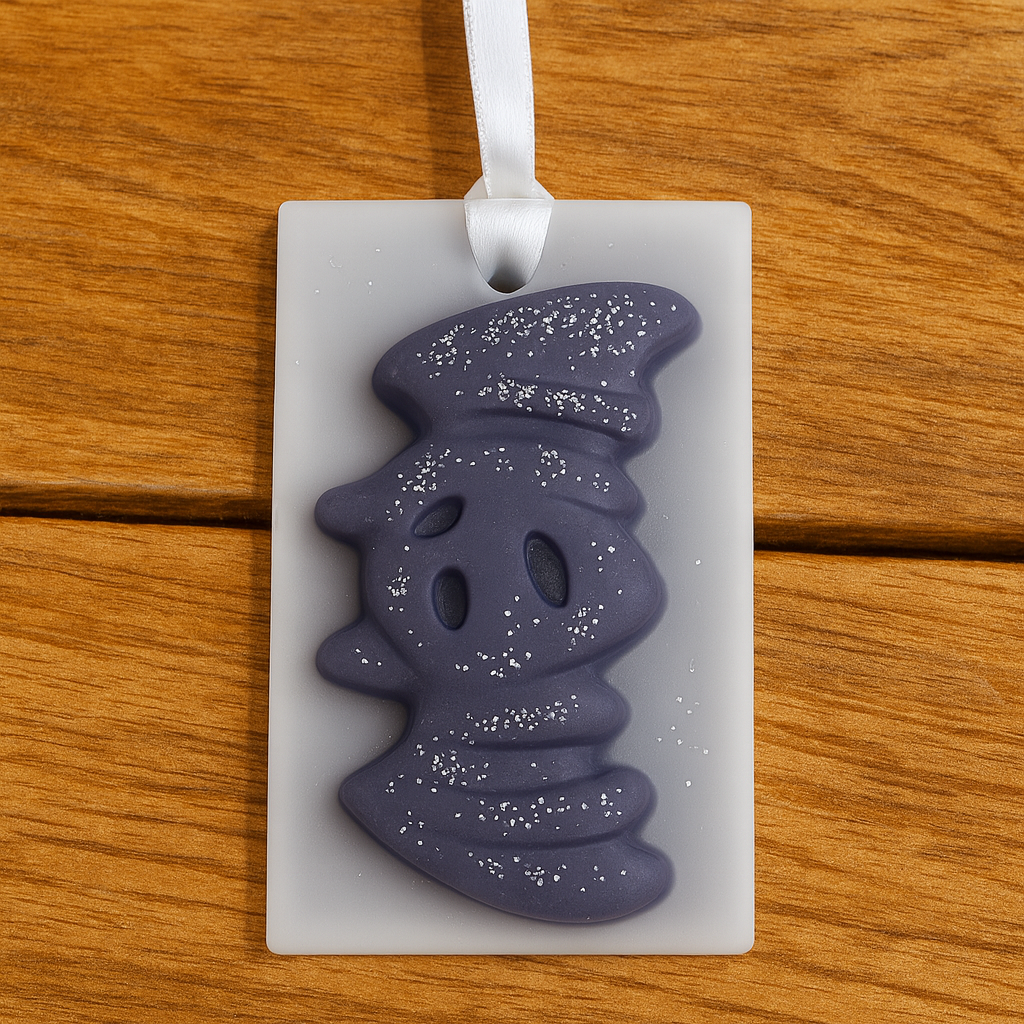 Απόκοσμη και ατμοσφαιρική, αυτή η χειροποίητη ταμπλέτα από 100% φυτικό κερί σόγιας είναι εμπνευσμένη από τις σκιές του Halloween. Η σκοτεινή νυχτερίδα αναδύεται μέσα από το κερί, στολισμένο με γκλίτερ που θυμίζουν νυχτερινή ομίχλη.
